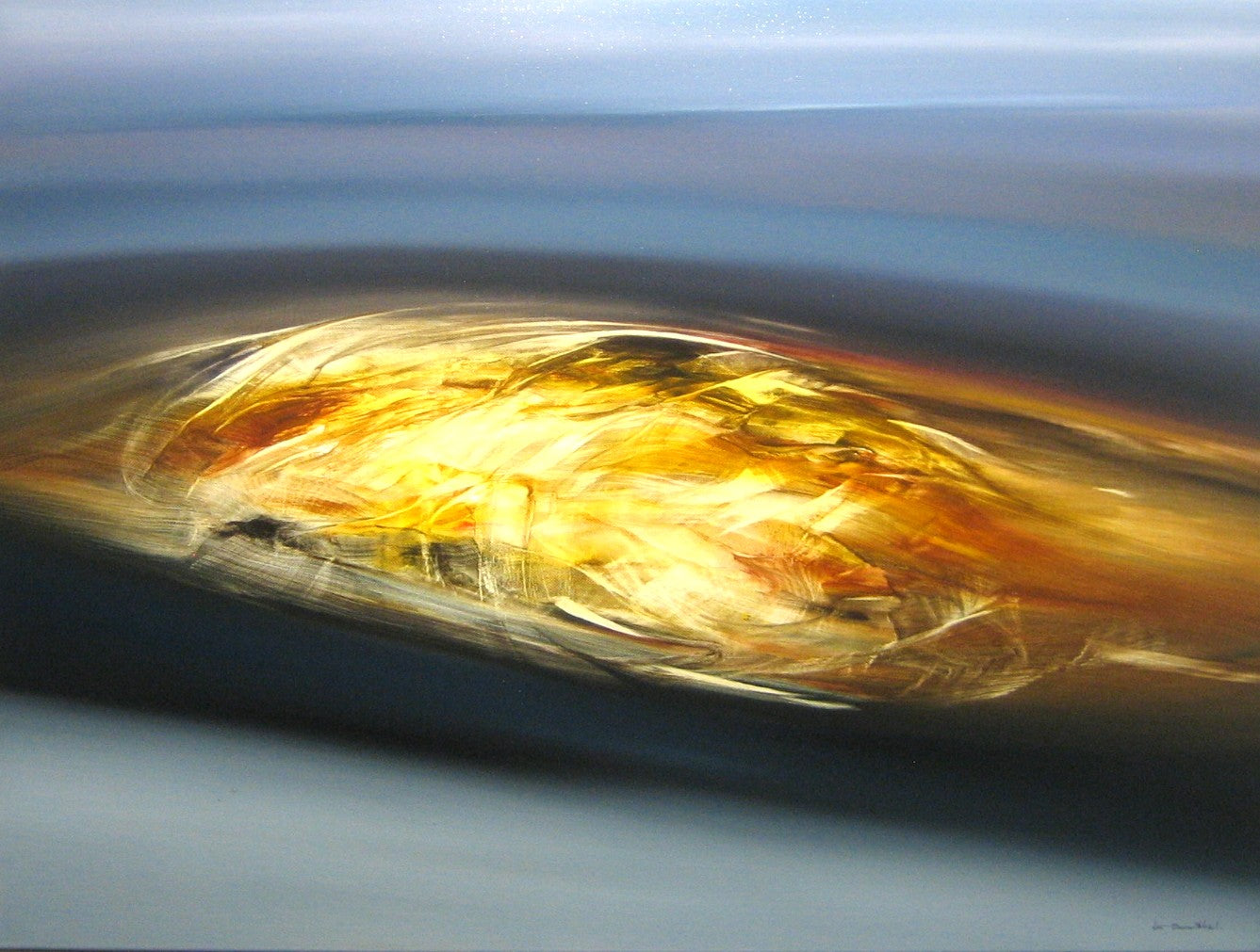 Chaque couche de peinture est appliquée avec maîtrise pour traduire la douceur de l’instant et la clarté de la lumière. Le geste pictural reste fluide et précis, laissant la matière dialoguer avec l’espace et créer une sensation de chaleur radieuse.