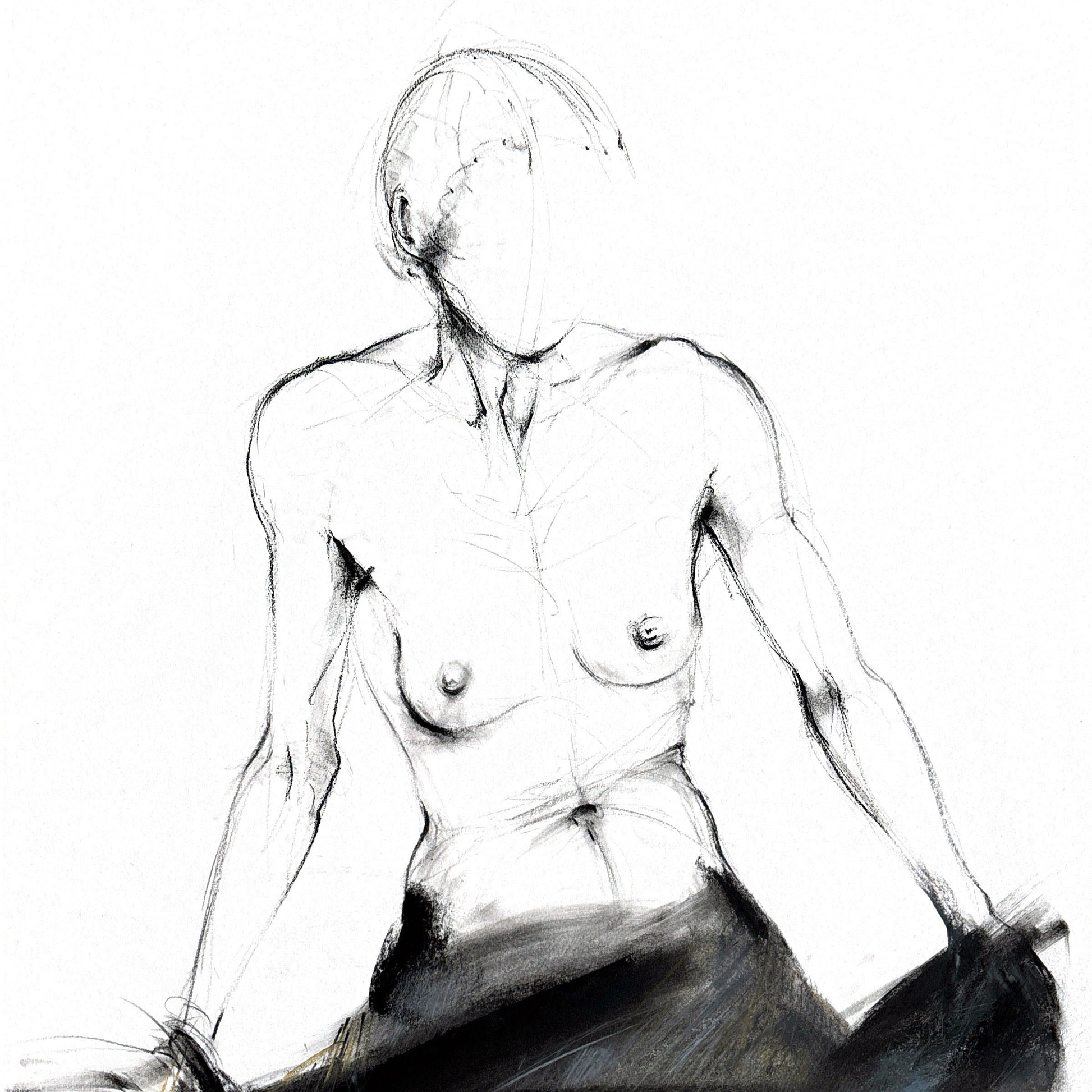 Conçue d’après modèle vivant, la pièce met en avant l’instant où le trait devient presque textile. Le pastel suggère la matière d’une robe en devenir, tandis que la pierre noire structure le volume du corps, révélant une scène à la fois intime et élégante.