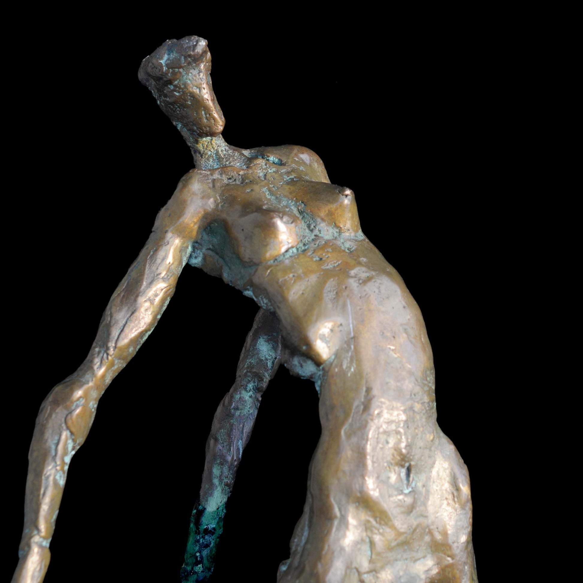 Entièrement façonnée en bronze, cette pièce unique capture l’ambiguïté d’une figure féminine à la fois charnelle et arachnéenne. Le métal, ici, devient peau et armature.