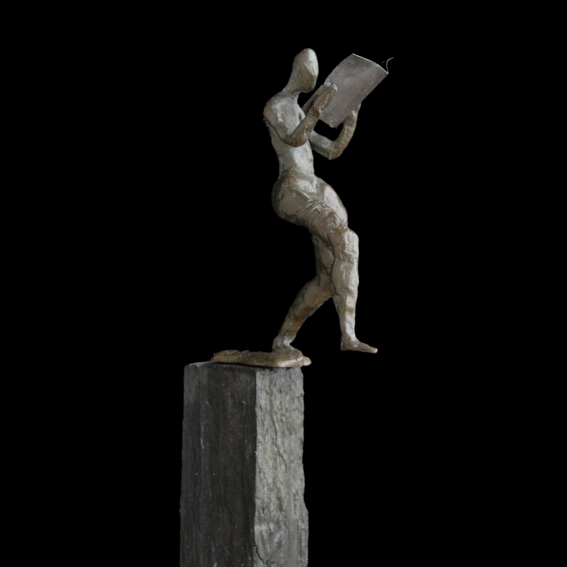 Avec une hauteur de 132 cm, une largeur de 18 cm et une profondeur de 20 cm, Homme qui lit se dresse dans un équilibre allongé, presque méditatif.
